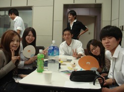 - ワークショップ(2)「サウンド・ハンティング」 場が暖まってきたところで、今度は学校ごとのグループではなく、3つの混成グループをつくりました。それぞれのグループに若手局員のみなさんが付き添い、ICレコーダの使い方をレクチャーした上で、局の内外で「音」を採取。スタジオに戻ったあと、他のグループが採ってきた音の正体を、クイズ形式で当てるという遊びをおこないました。単にICレコーダの使い方に慣れるだけでなく、身のまわりの音に対する感性を研ぎすませるという意味でも、今後の活動につながる準備運動的なワークショップだったといえます。